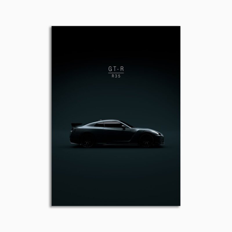 This 2020 Nissan GTR Nismo (R35) digital poster is minimalist automotive wall art designed for modern interiors. It emphasizes silhouette, proportion, and a premium, gallery-like presentation.