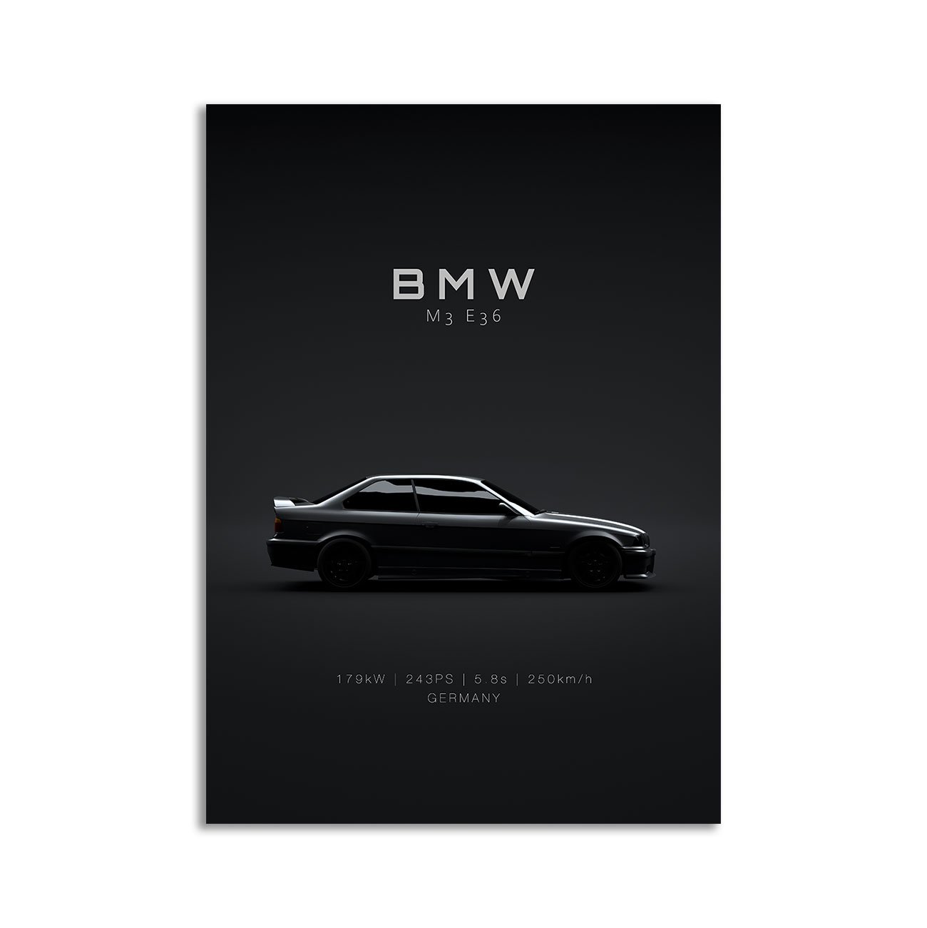 This 1997 bmw e36 m3 digital poster is clean, technical automotive wall art with a detail-forward, premium look. It’s built for modern interiors where less is more – strong silhouette, controlled contrast, and a focused composition.