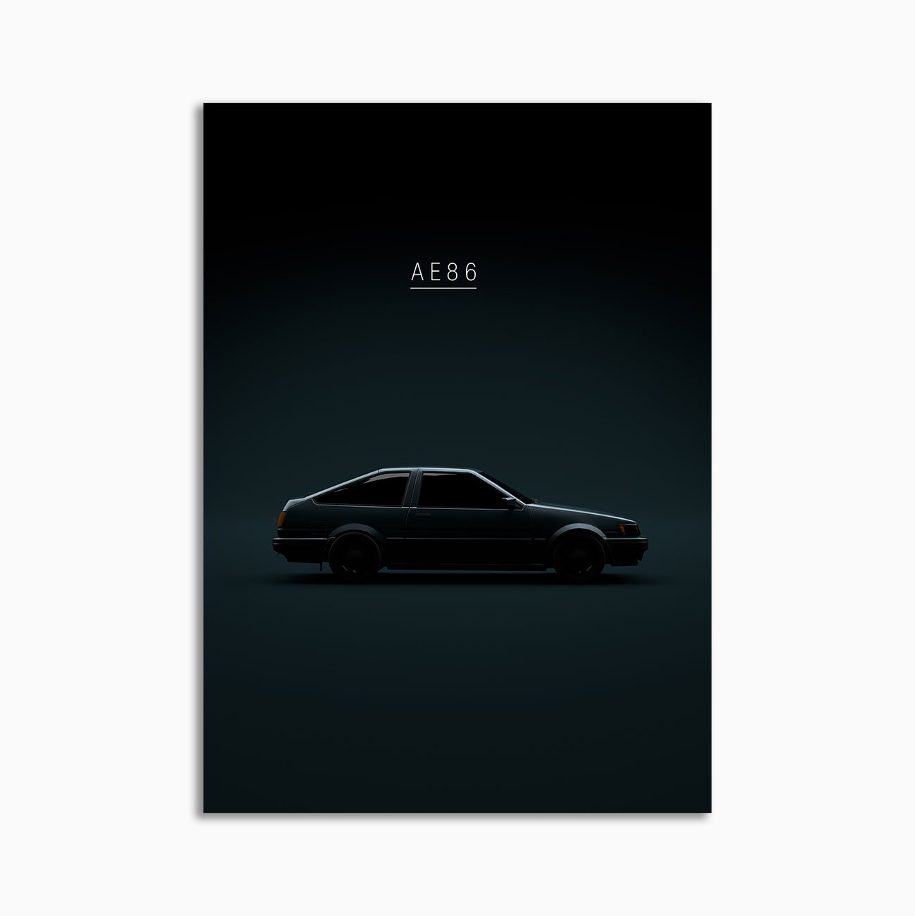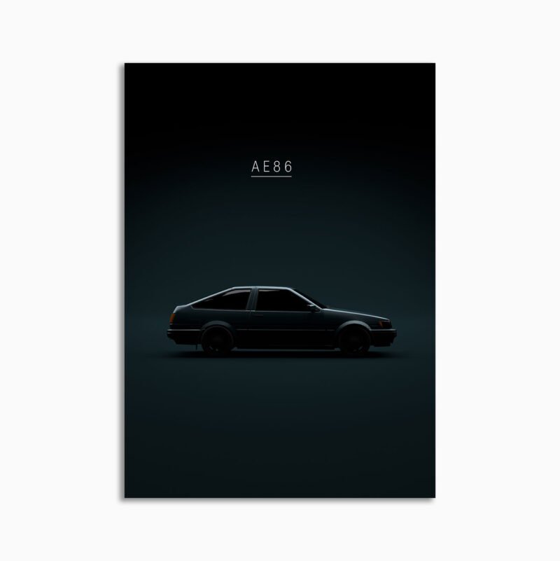 This 1983 Toyota Corolla Levin GT-APEX AE86 digital poster is minimalist automotive wall art designed for modern interiors. It emphasizes silhouette, proportion, and a premium, gallery-like presentation.