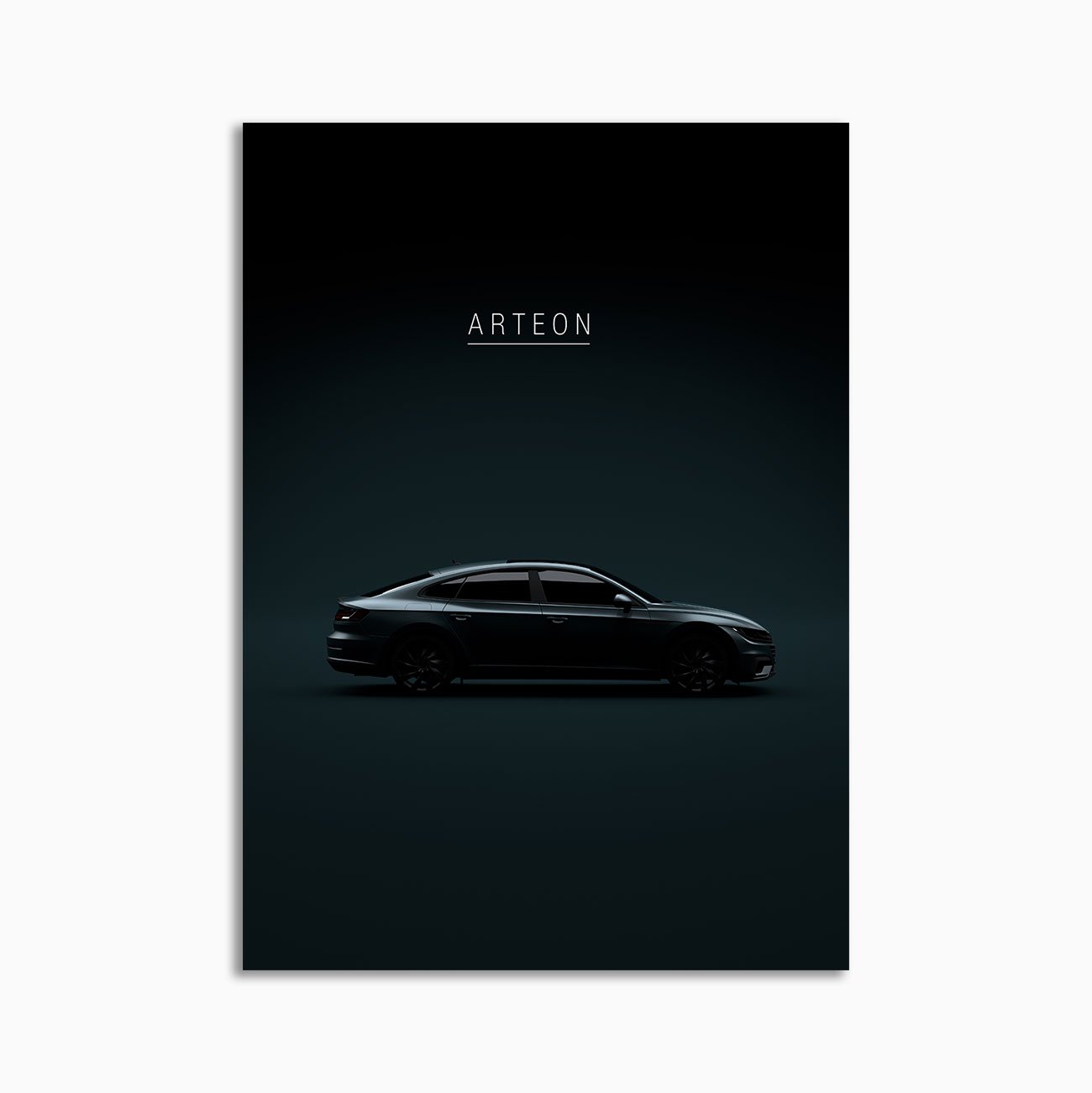 This VW ArteonR-line 2018 digital poster is minimalist automotive wall art designed for modern interiors. It emphasizes silhouette, proportion, and a premium, gallery-like presentation.