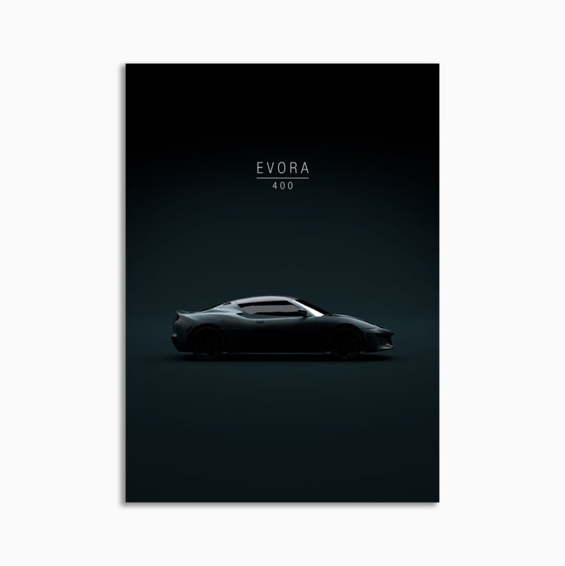 This Lotus Evora 400 2016 digital poster is minimalist automotive wall art designed for modern interiors. It emphasizes silhouette, proportion, and a premium, gallery-like presentation.