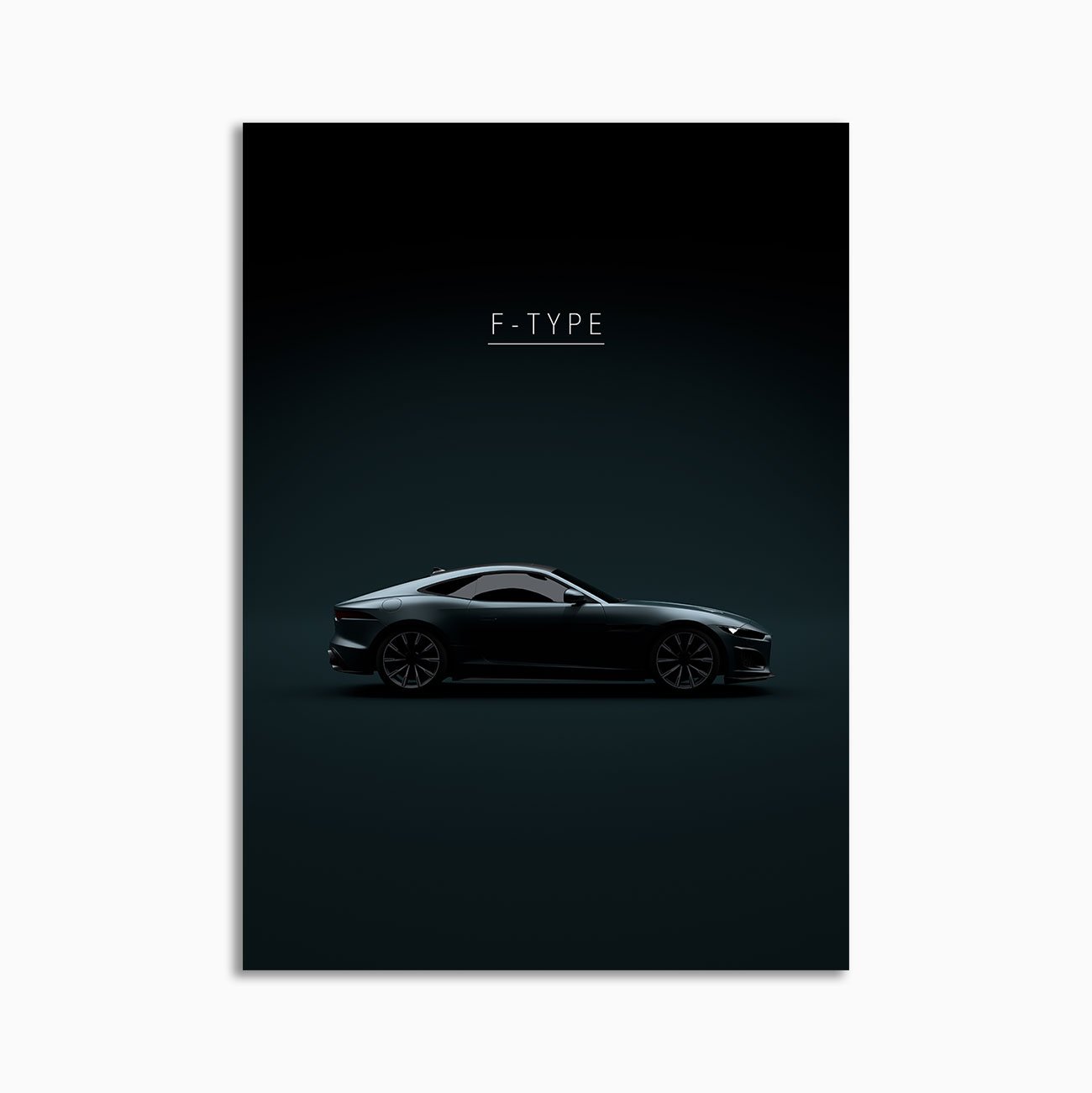 This 2021 Jaguar F-Type R digital poster is minimalist automotive wall art designed for modern interiors. It emphasizes silhouette, proportion, and a premium, gallery-like presentation.