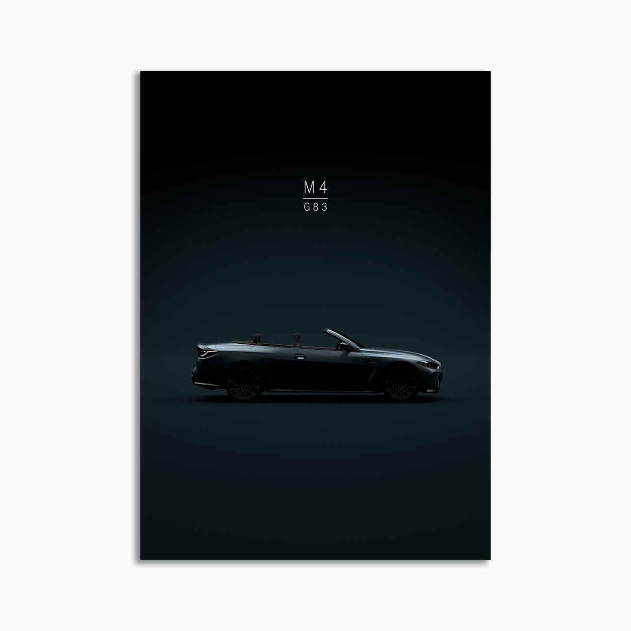 This 2021 BMW M4 G83 Convertible digital poster is minimalist wall art focused on flow and silhouette – clean lines and a refined, modern mood.