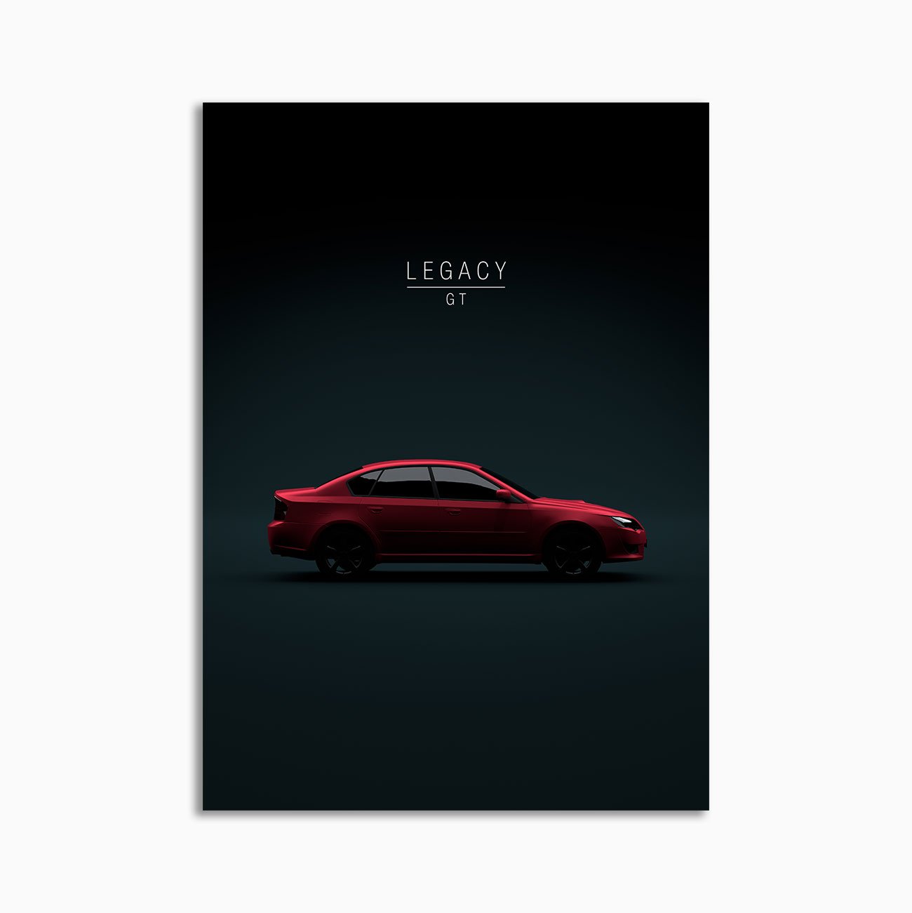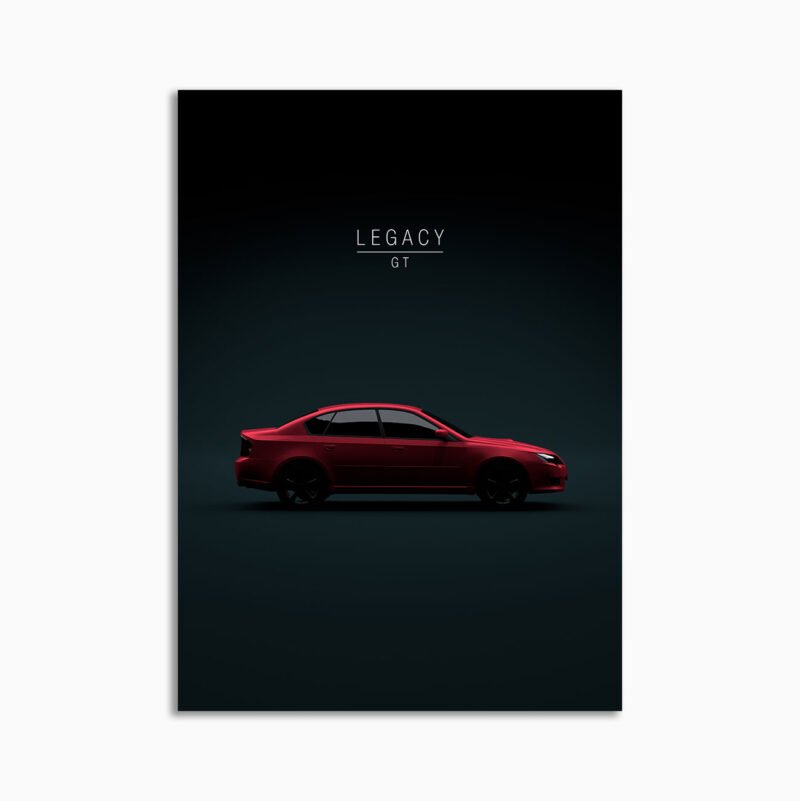 This Subaru Legacy GT Ruby Red Pearl 2008 no wing digital poster is minimalist automotive wall art designed for modern interiors. It emphasizes silhouette, proportion, and a premium, gallery-like presentation.