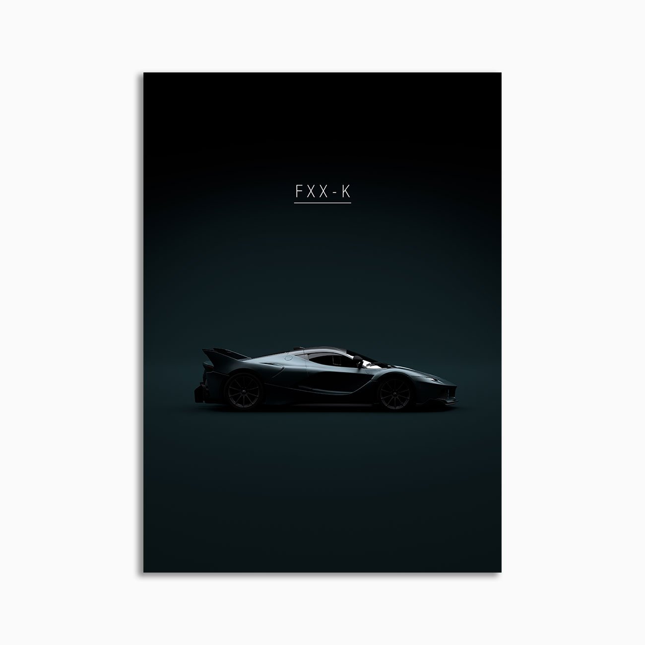 This 2015 Ferrari FXX K digital poster is minimalist automotive wall art designed for modern interiors. It emphasizes silhouette, proportion, and a premium, gallery-like presentation.