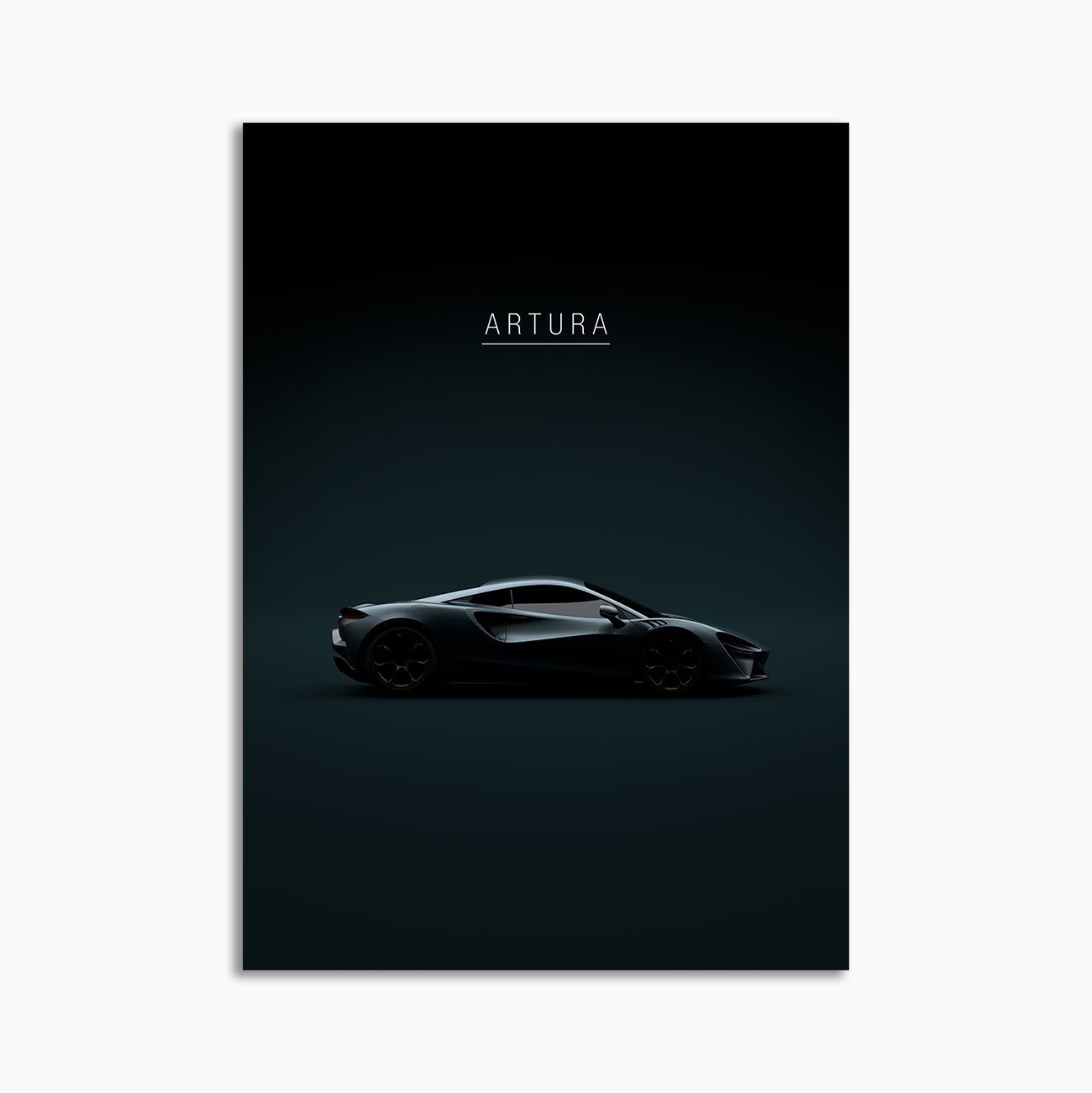 This 2022 McLaren Artura digital poster is minimalist automotive wall art designed for modern interiors. It emphasizes silhouette, proportion, and a premium, gallery-like presentation.