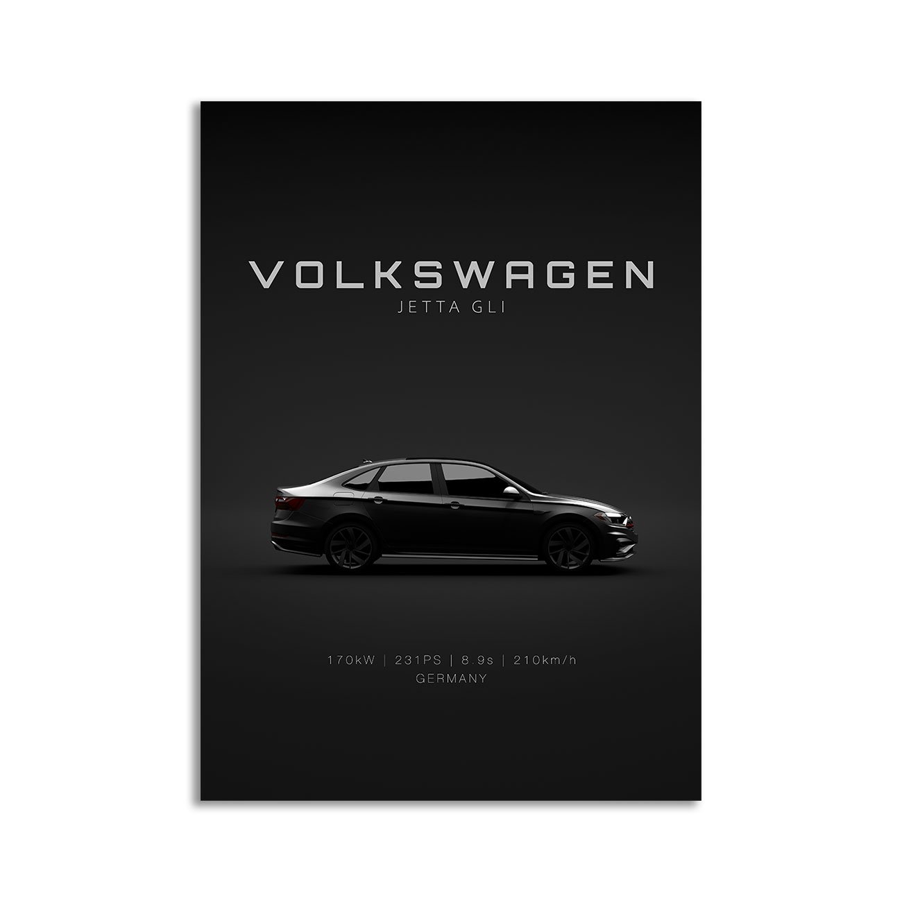 This Volkswagen Jetta GLI 2019 digital poster is clean, technical automotive wall art with a detail-forward, premium look. It’s built for modern interiors where less is more – strong silhouette, controlled contrast, and a focused composition.