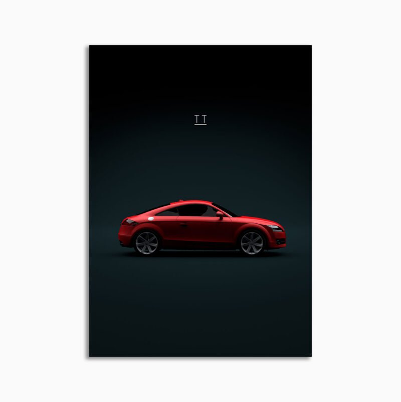 This Audi TT Coupe quattro 2007 MK2 – Red digital poster is minimalist automotive wall art designed for modern interiors. It emphasizes silhouette, proportion, and a premium, gallery-like presentation.