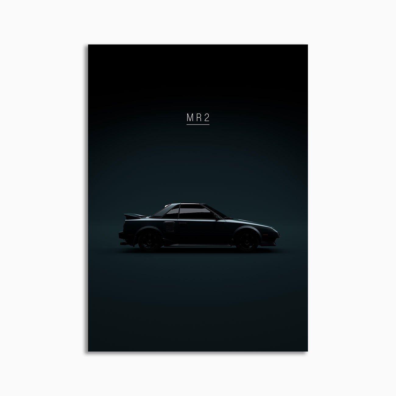 This Toytota MR2 Mk1 1984 digital poster is minimalist automotive wall art designed for modern interiors. It emphasizes silhouette, proportion, and a premium, gallery-like presentation.