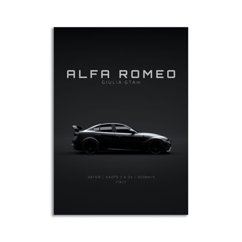 This Alfa Romeo Giulia GTAm 2021 digital poster is clean, technical automotive wall art with a detail-forward, premium look. It’s built for modern interiors where less is more – strong silhouette, controlled contrast, and a focused composition.