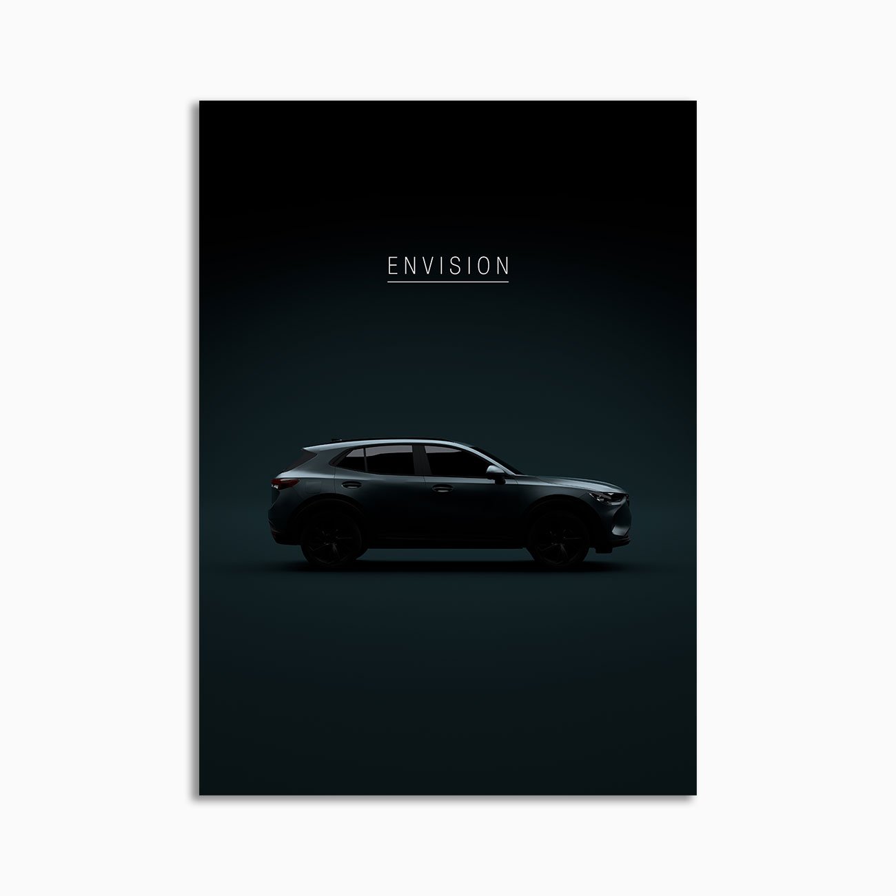 This 2022 Buick Envision Preferred 4dr Crossover digital poster is minimalist automotive wall art designed for modern interiors. It emphasizes silhouette, proportion, and a premium, gallery-like presentation.