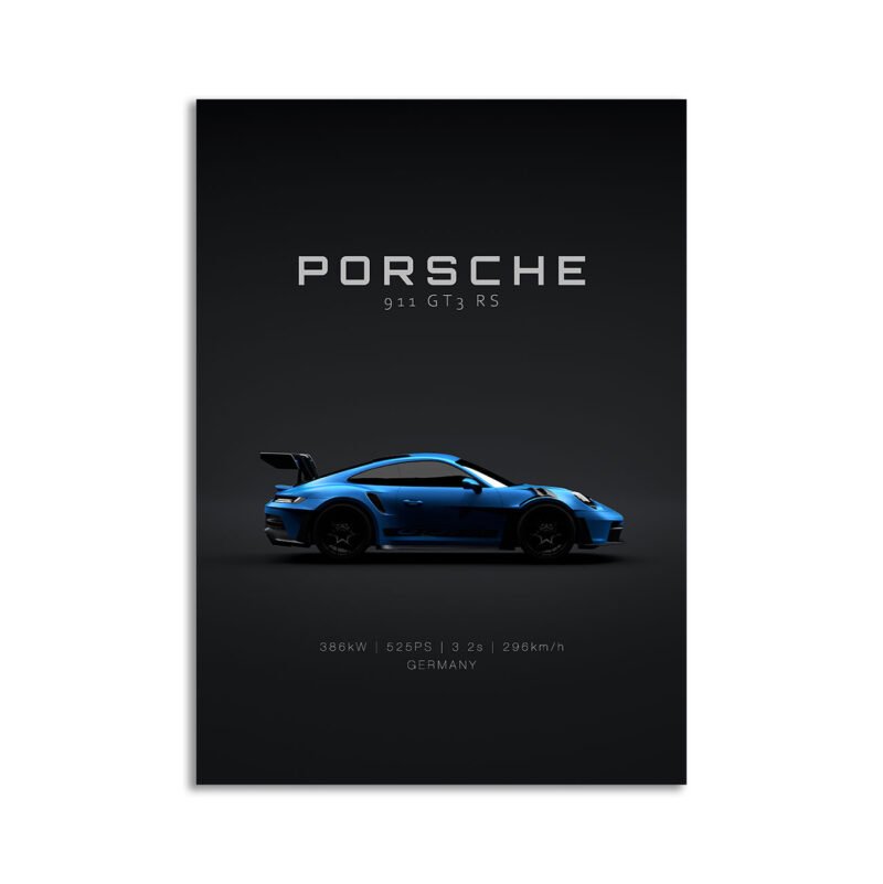 This Porsche 911 GT3 RS 2022 Shark Blue digital poster is clean, technical automotive wall art with a detail-forward, premium look. It’s built for modern interiors where less is more – strong silhouette, controlled contrast, and a focused composition.