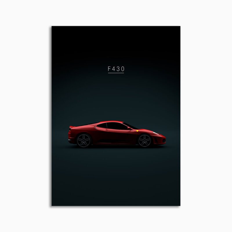 This 2004 Ferrari F430 Red digital poster is minimalist automotive wall art designed for modern interiors. It emphasizes silhouette, proportion, and a premium, gallery-like presentation.