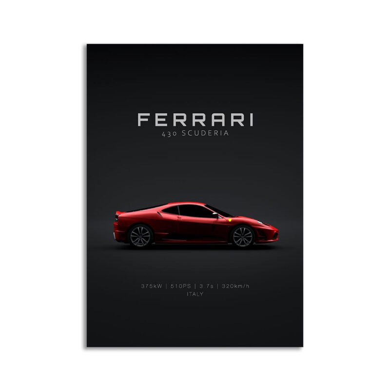 This 2007 Ferrari 430 Scuderia Red digital poster is clean, technical automotive wall art with a detail-forward, premium look. It’s built for modern interiors where less is more – strong silhouette, controlled contrast, and a focused composition.