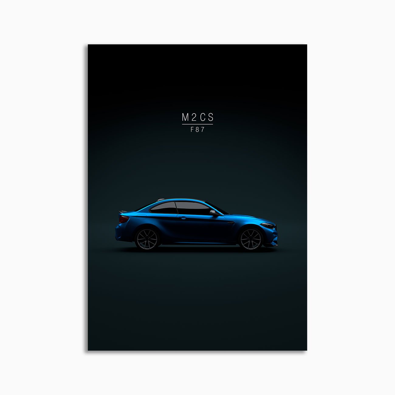 This BMW M2 CS 2020 m2 cs text misano blue digital poster is minimalist automotive wall art designed for modern interiors. It emphasizes silhouette, proportion, and a premium, gallery-like presentation.