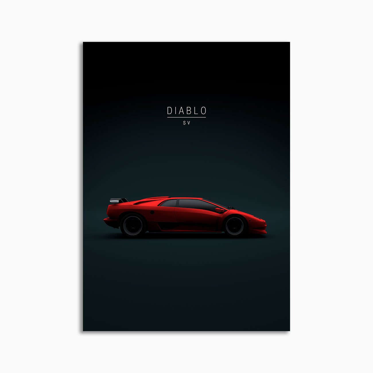 1997 Lamborghini Diablo SV Red Minimalist Poster – Digital Download