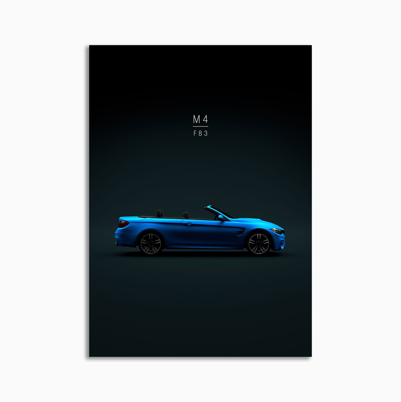 This BMW 4-series F83 Convertible M Interior 2014 Yas Marina Blue digital poster is minimalist wall art focused on flow and silhouette – clean lines and a refined, modern mood.