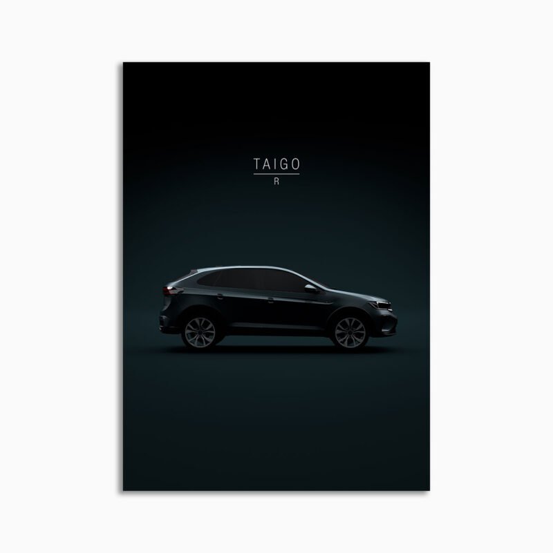 This Volkswagen Taigo R 2022 digital poster is minimalist automotive wall art designed for modern interiors. It emphasizes silhouette, proportion, and a premium, gallery-like presentation.