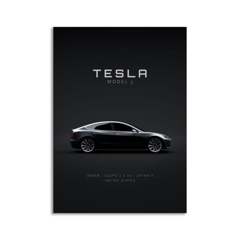 This Tesla Model 3 2018 digital poster is clean, technical automotive wall art with a detail-forward, premium look. It’s built for modern interiors where less is more – strong silhouette, controlled contrast, and a focused composition.