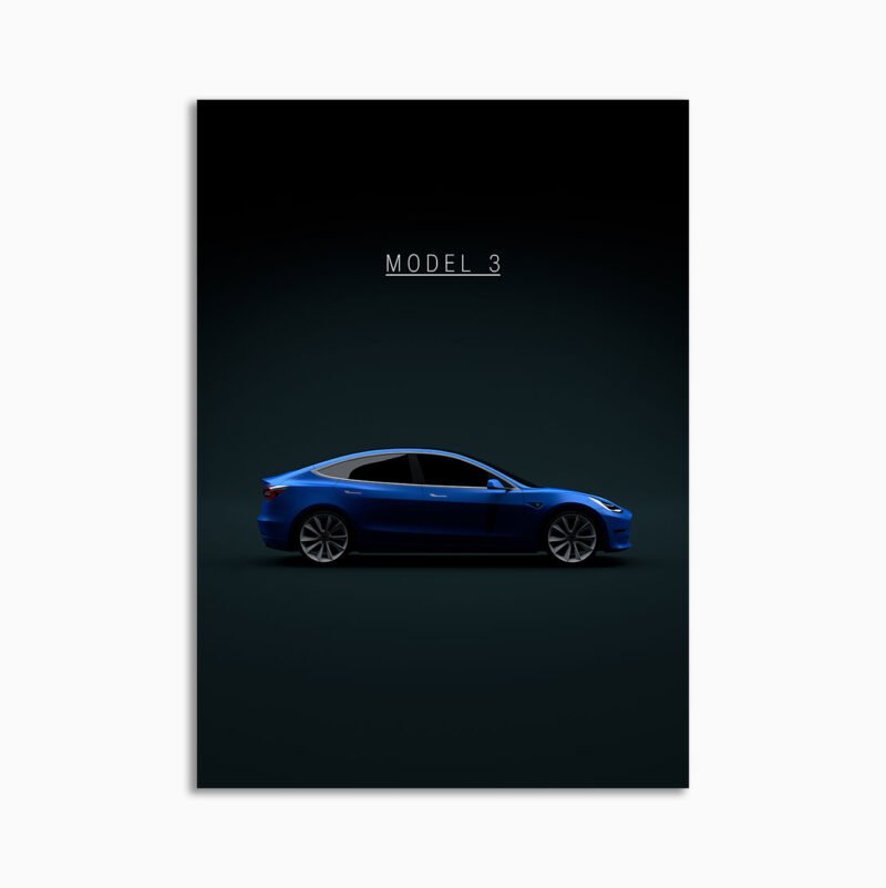 Tesla Model 3 2018 Blue Minimalist Poster – Digital Download