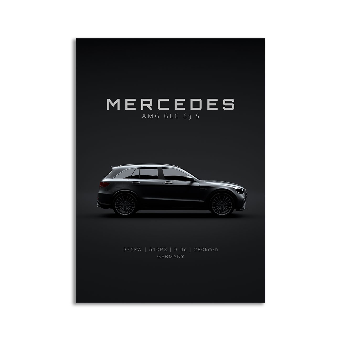 This Mercedes-Benz GLC63 S AMG 2020 digital poster is clean, technical automotive wall art with a detail-forward, premium look. It’s built for modern interiors where less is more – strong silhouette, controlled contrast, and a focused composition.