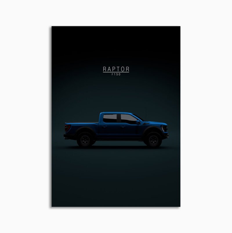 This Ford F150 Raptor 2021 Blue digital poster is minimalist automotive wall art designed for modern interiors. It emphasizes silhouette, proportion, and a premium, gallery-like presentation.