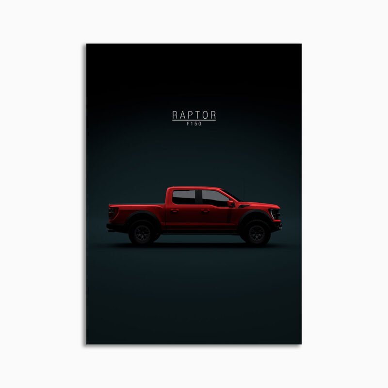 This Ford F150 Raptor 2021 Red digital poster is minimalist automotive wall art designed for modern interiors. It emphasizes silhouette, proportion, and a premium, gallery-like presentation.