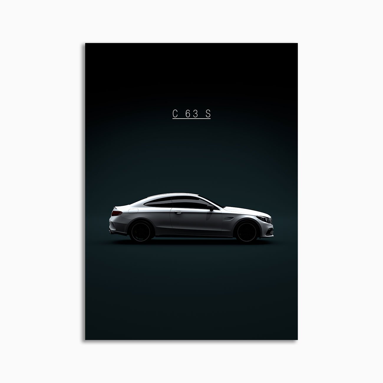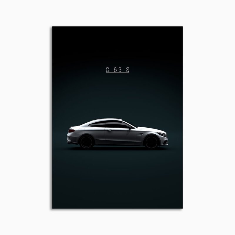 This Mercedes C63 S AMG Coupe 2019 White digital poster is minimalist automotive wall art designed for modern interiors. It emphasizes silhouette, proportion, and a premium, gallery-like presentation.