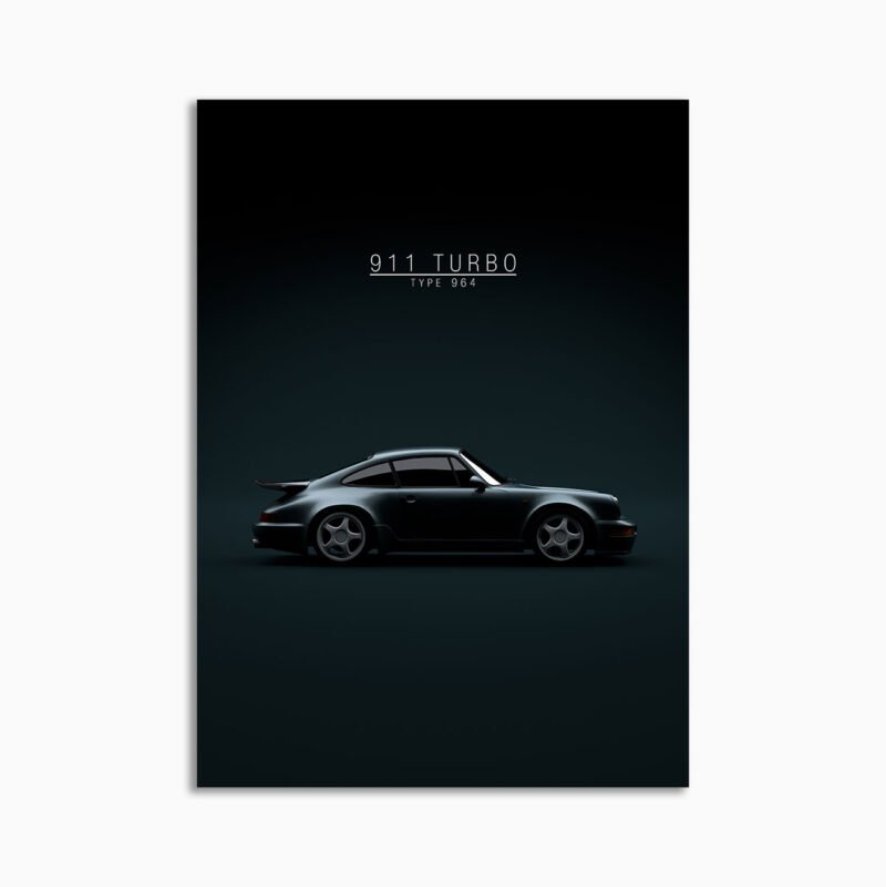 This porsche 964 turbo 1993 digital poster is minimalist automotive wall art designed for modern interiors. It emphasizes silhouette, proportion, and a premium, gallery-like presentation.