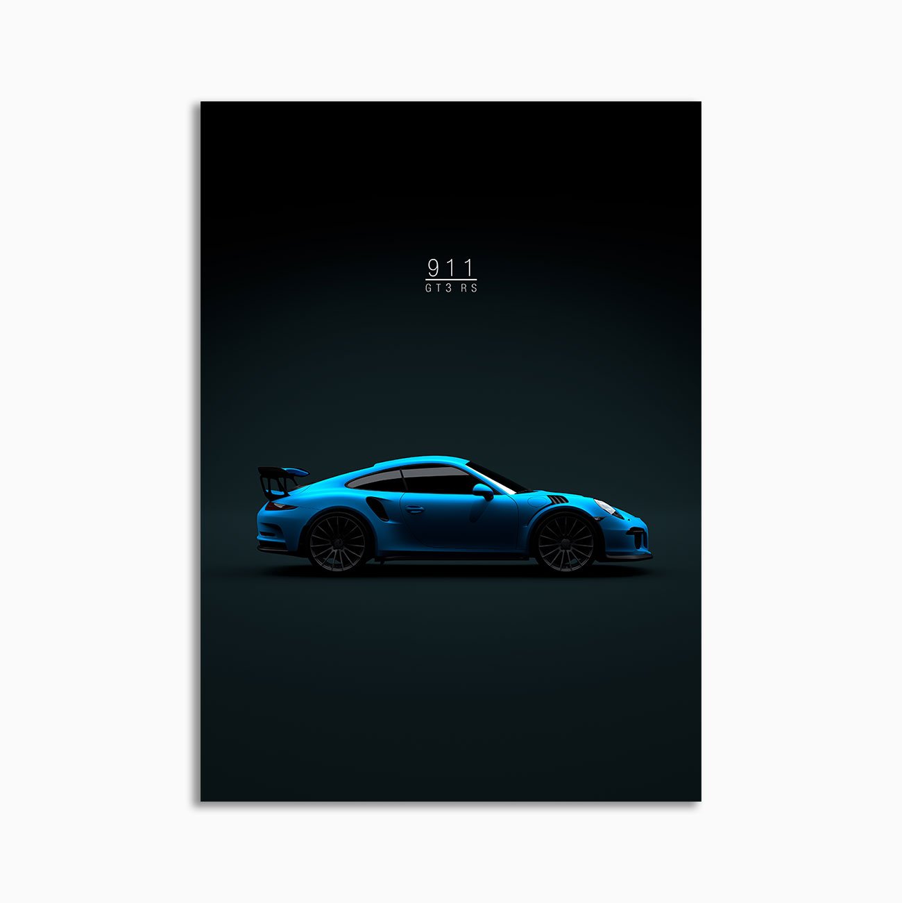 This 2016 Carrera 911 GT3 RS Blue digital poster is minimalist motorsport-inspired wall art – built around stance, speed, and a restrained aesthetic.