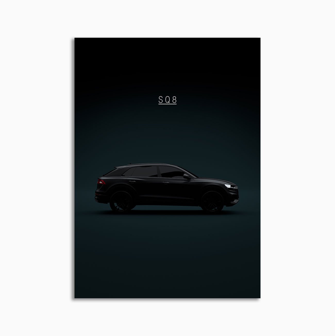 This Audi SQ8 2021 full black digital poster is minimalist automotive wall art designed for modern interiors. It emphasizes silhouette, proportion, and a premium, gallery-like presentation.