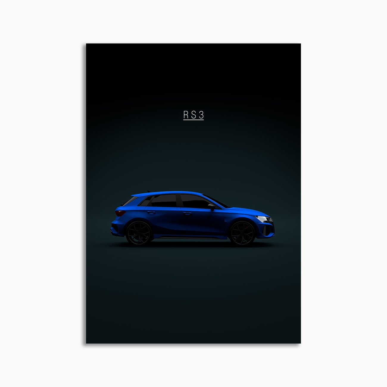 This Audi RS3 Sportback 2021 8Y Blue digital poster is minimalist motorsport-inspired wall art – built around stance, speed, and a restrained aesthetic.