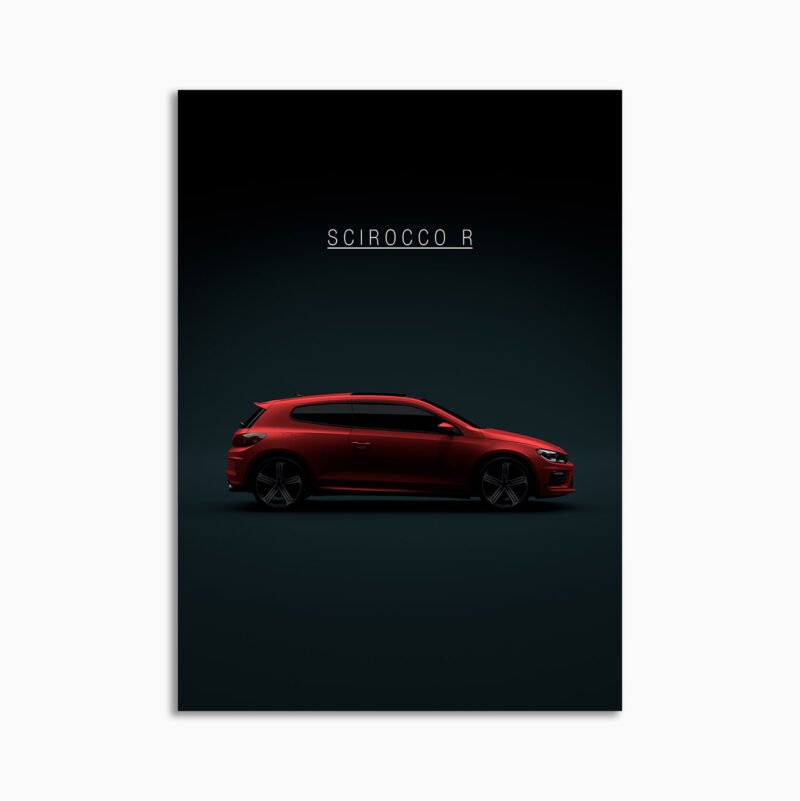 This 2015 VW Scirocco R – Red digital poster is minimalist automotive wall art designed for modern interiors. It emphasizes silhouette, proportion, and a premium, gallery-like presentation.