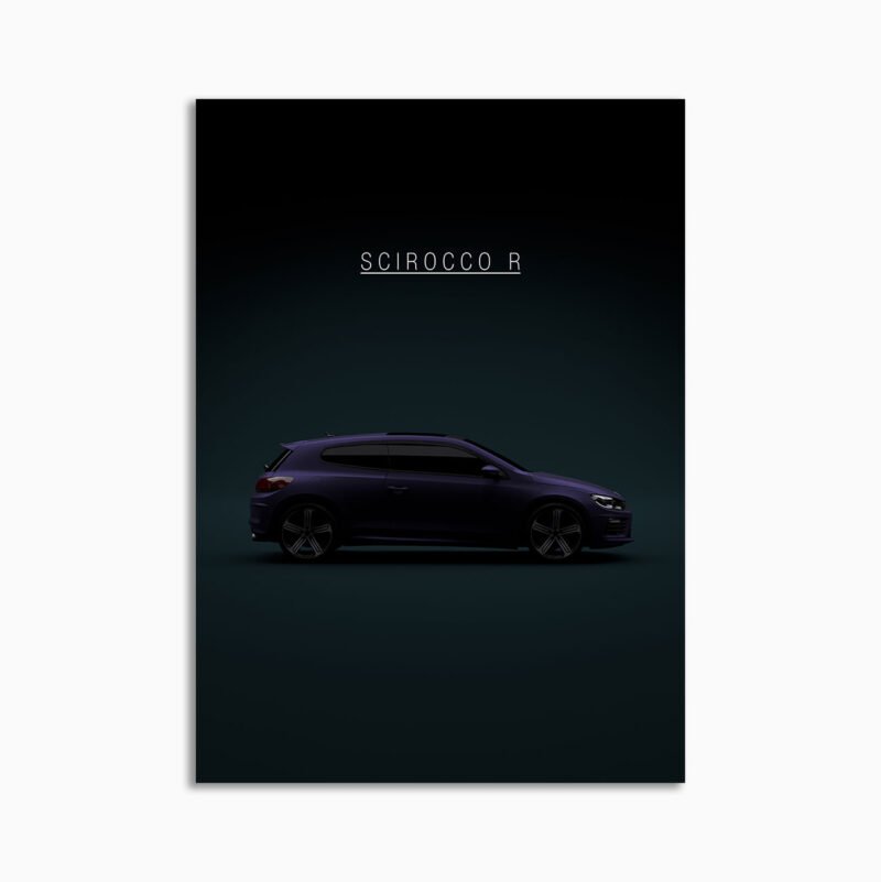This 2015 VW Scirocco R – Violet v2 digital poster is minimalist automotive wall art designed for modern interiors. It emphasizes silhouette, proportion, and a premium, gallery-like presentation.