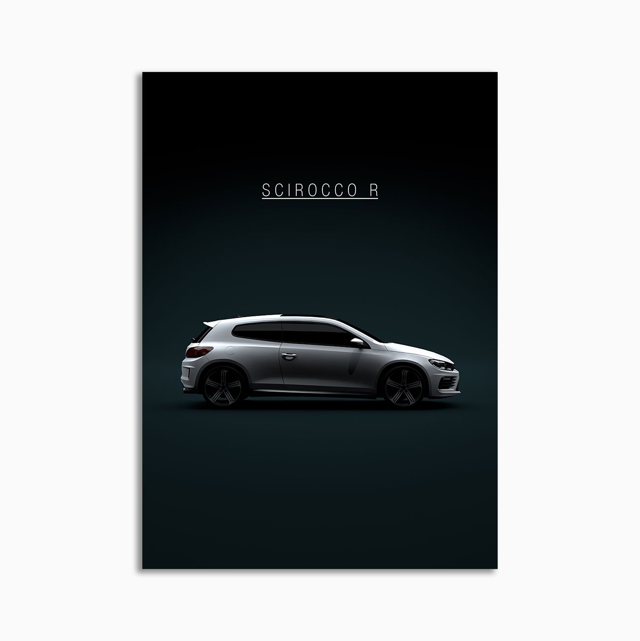This 2015 VW Scirocco R – White digital poster is minimalist automotive wall art designed for modern interiors. It emphasizes silhouette, proportion, and a premium, gallery-like presentation.