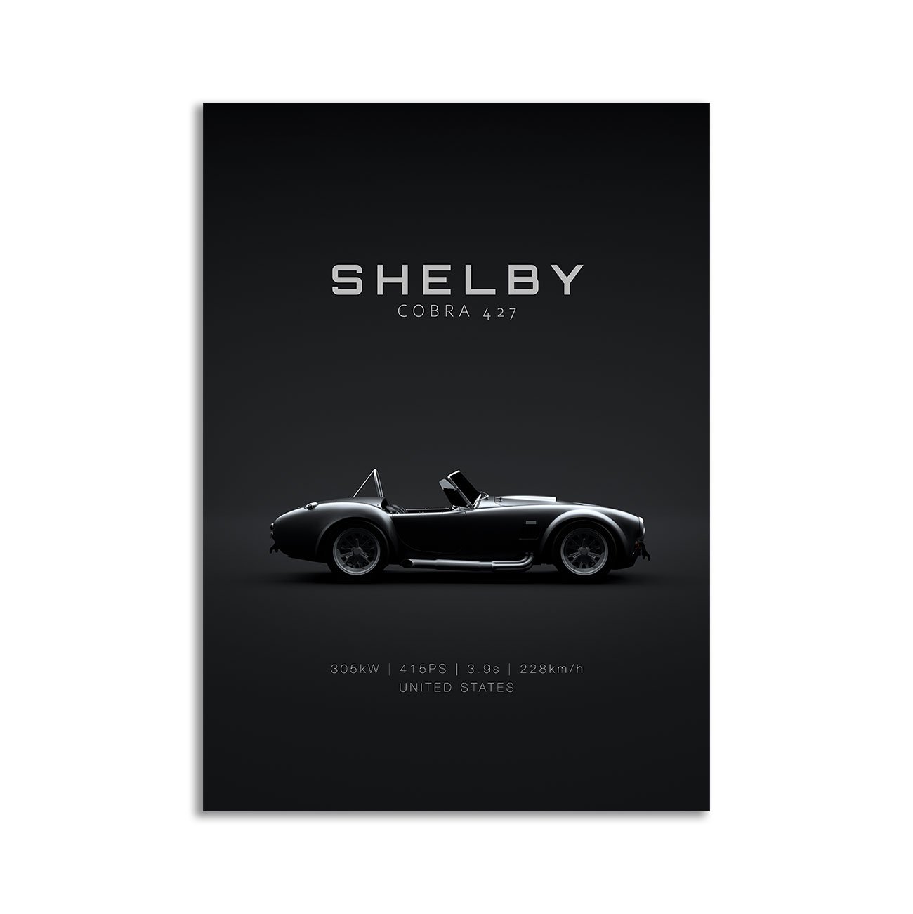 This 1965 Shelby Cobra 427 S-C digital poster is clean, technical automotive wall art with a detail-forward, premium look. It’s built for modern interiors where less is more – strong silhouette, controlled contrast, and a focused composition.