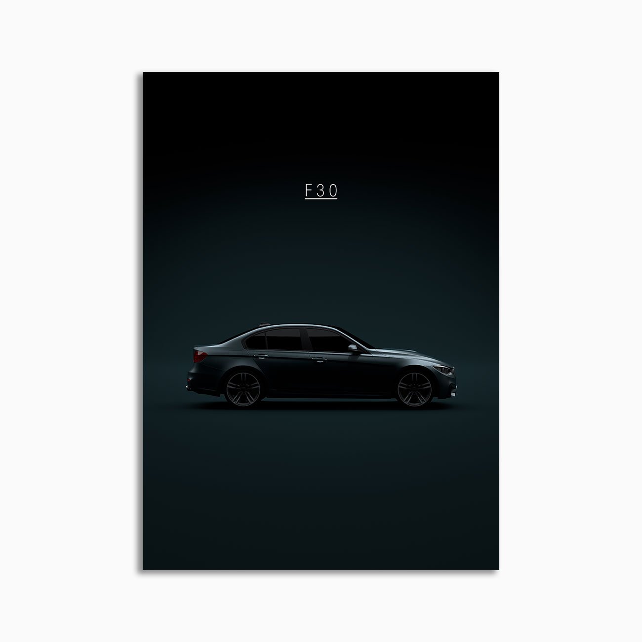 This BMW 3 Series F30 M Pack 2015 digital poster is minimalist automotive wall art designed for modern interiors. It emphasizes silhouette, proportion, and a premium, gallery-like presentation.