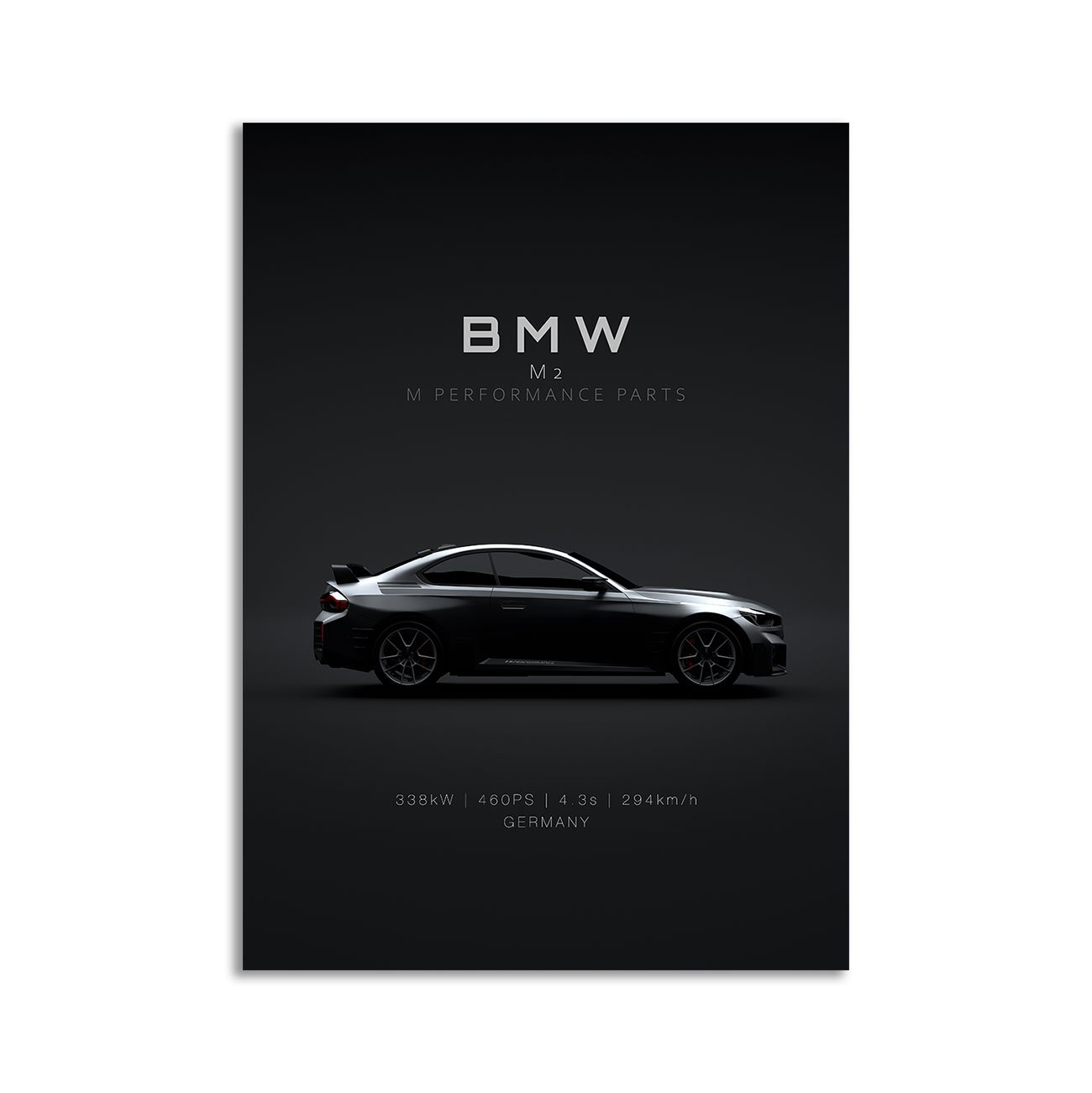 This BMW M2 M Performance Parts 2023 digital poster is clean, technical automotive wall art with a detail-forward, premium look. It’s built for modern interiors where less is more – strong silhouette, controlled contrast, and a focused composition.