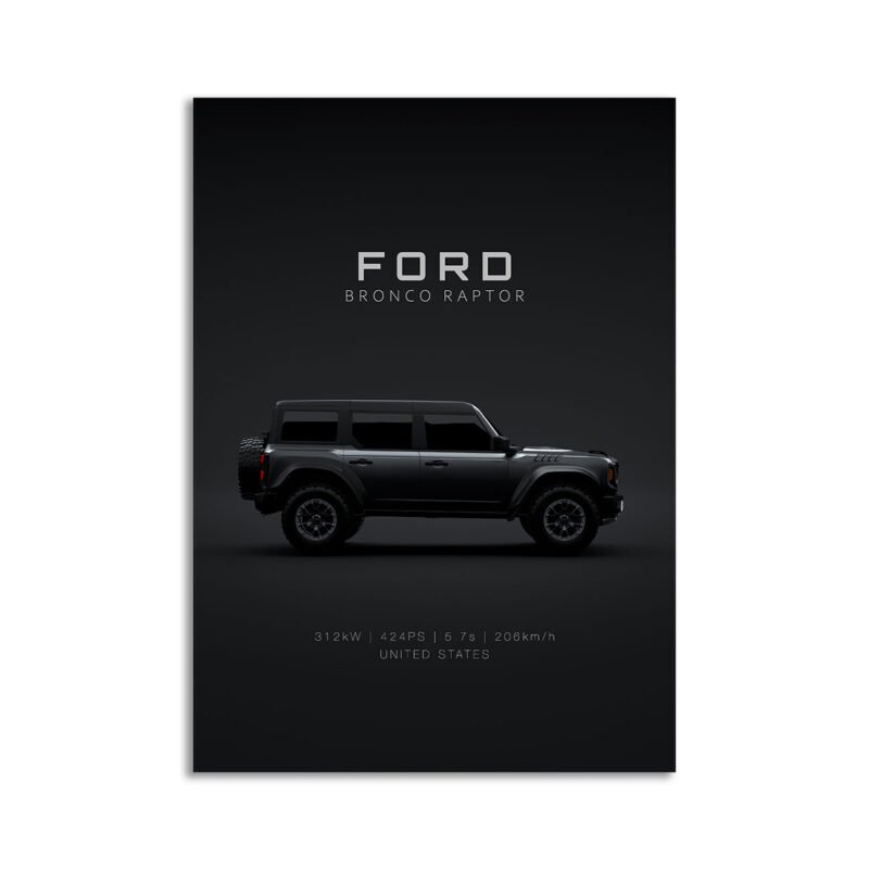 This Ford Bronco Raptor 2022 digital poster is clean, technical automotive wall art with a detail-forward, premium look. It’s built for modern interiors where less is more – strong silhouette, controlled contrast, and a focused composition.
