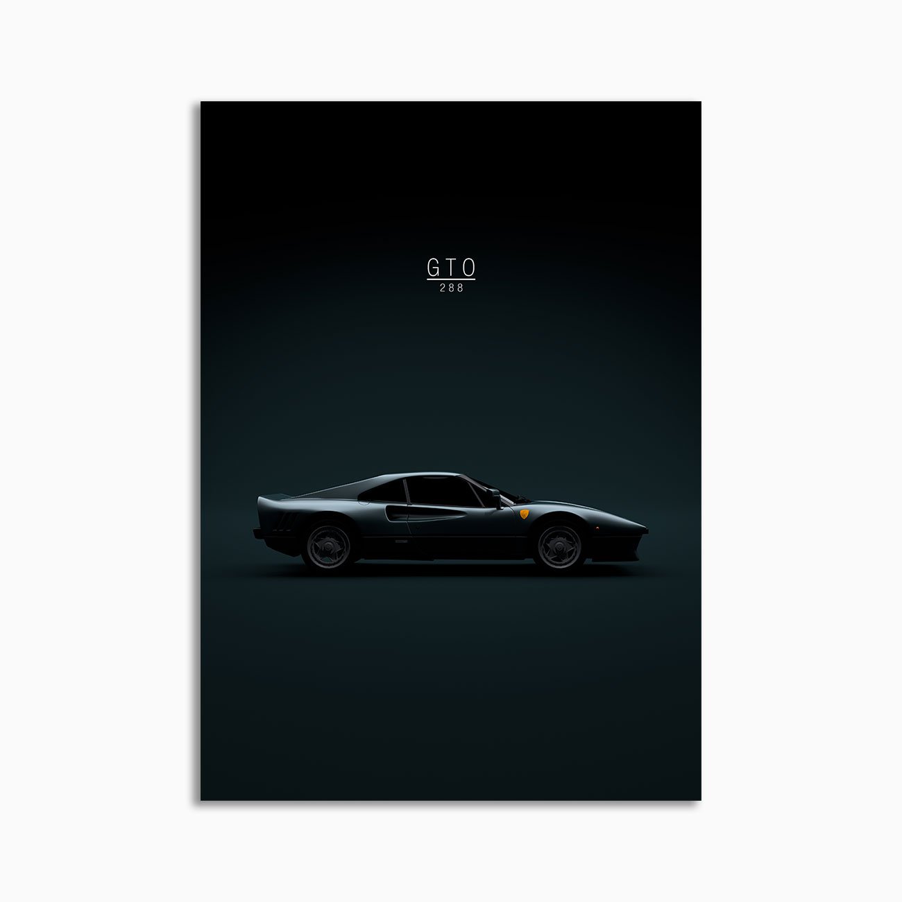This Ferrari 288 GTO 1984 digital poster is minimalist automotive wall art designed for modern interiors. It emphasizes silhouette, proportion, and a premium, gallery-like presentation.