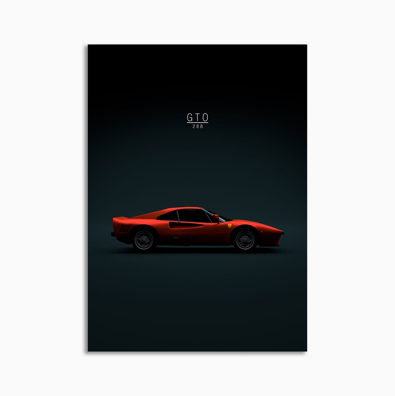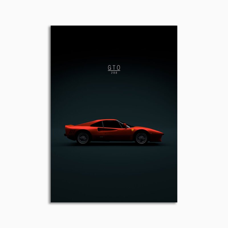 This Ferrari 288 GTO 1984 – Red digital poster is minimalist automotive wall art designed for modern interiors. It emphasizes silhouette, proportion, and a premium, gallery-like presentation.