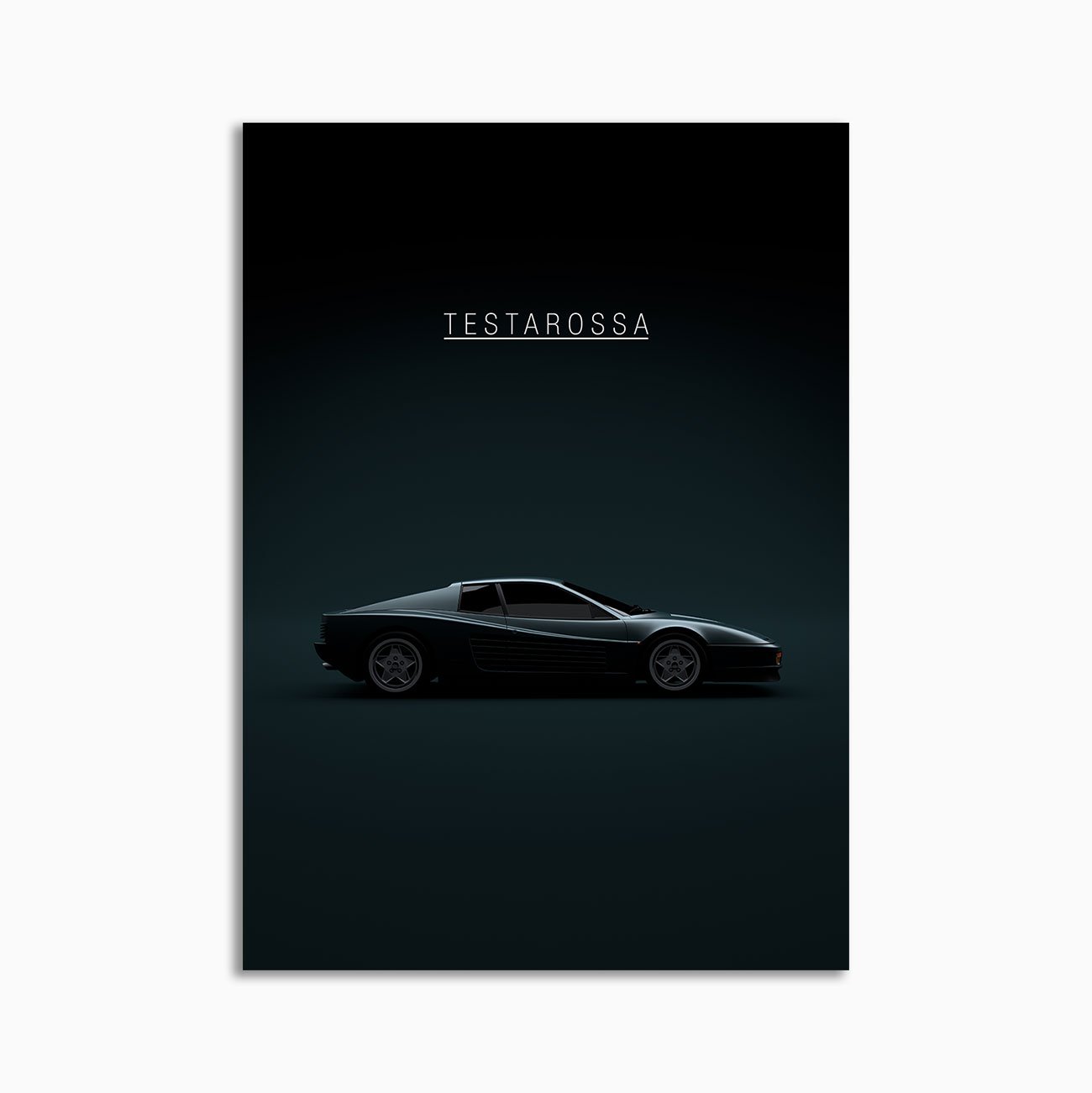 This Ferrari Testarossa 1984 digital poster is minimalist automotive wall art designed for modern interiors. It emphasizes silhouette, proportion, and a premium, gallery-like presentation.