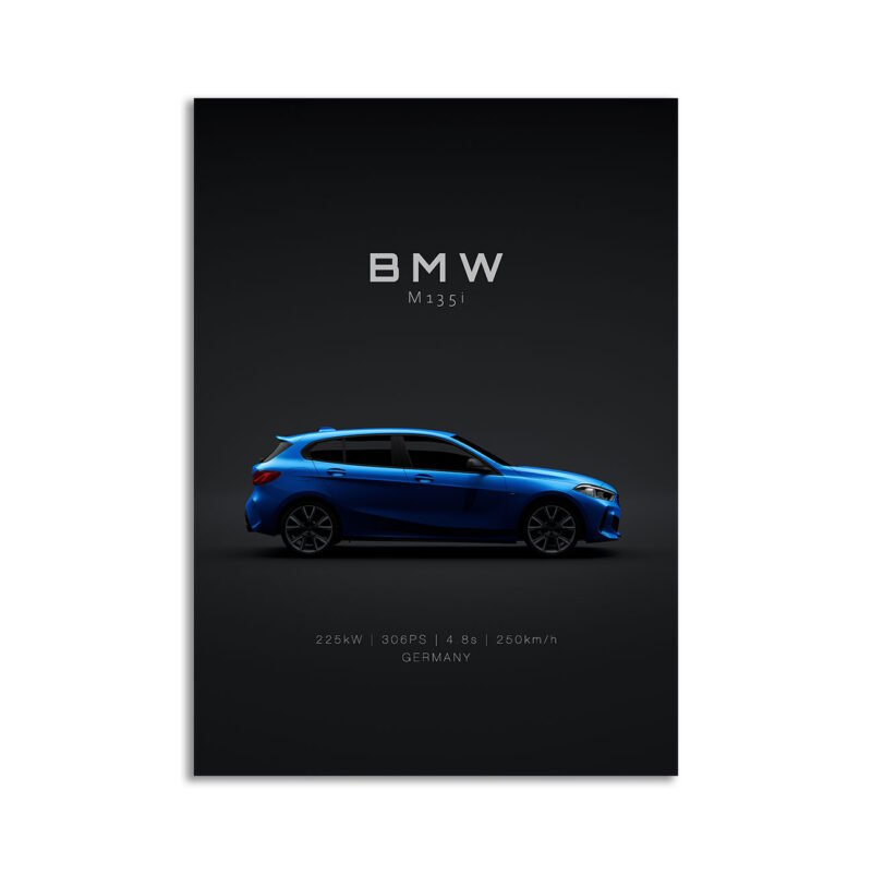 This BMW M135i F40 2020 misano blue digital poster is clean, technical automotive wall art with a detail-forward, premium look. It’s built for modern interiors where less is more – strong silhouette, controlled contrast, and a focused composition.