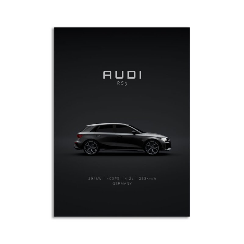 This Audi RS3 Sportback 2021 8Y digital poster is clean, technical automotive wall art with a detail-forward, premium look. It’s built for modern interiors where less is more – strong silhouette, controlled contrast, and a focused composition.