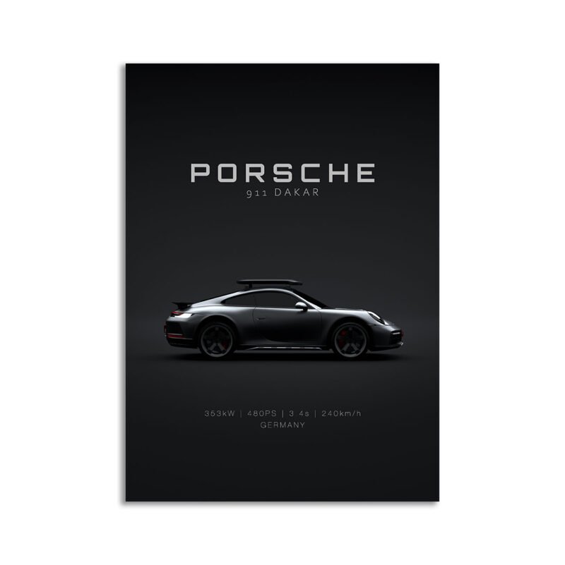 This Porsche 911 Dakar 2023 digital poster is clean, technical automotive wall art with a detail-forward, premium look. It’s built for modern interiors where less is more – strong silhouette, controlled contrast, and a focused composition.