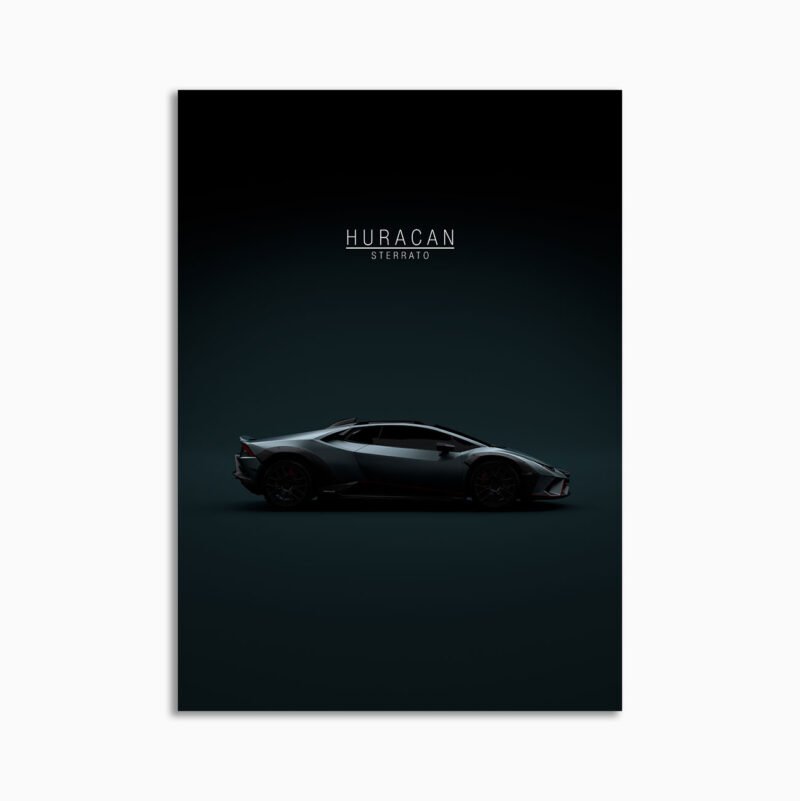 This Lamborghini Huracan Sterrato 2023 digital poster is minimalist automotive wall art designed for modern interiors. It emphasizes silhouette, proportion, and a premium, gallery-like presentation.