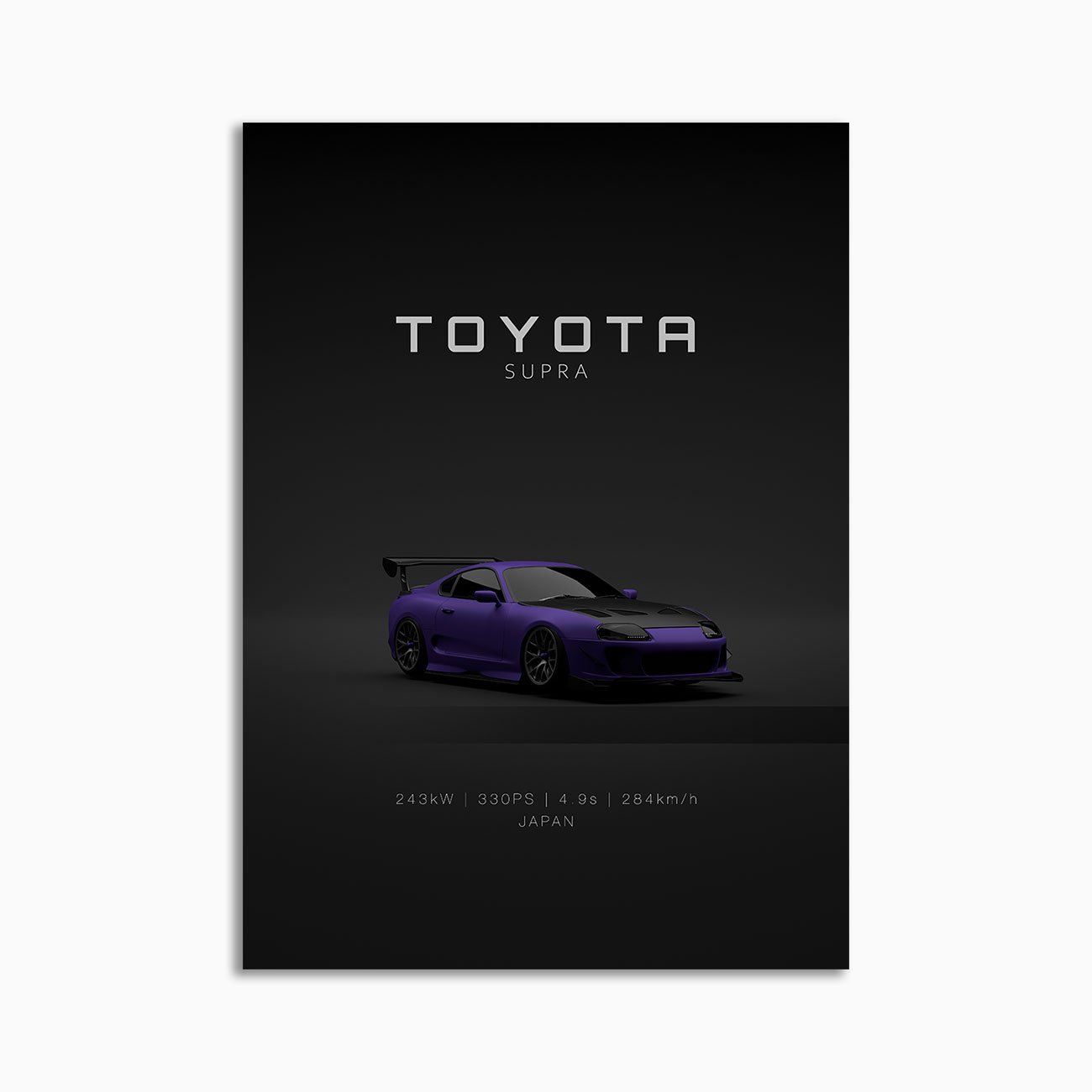 This Toyota Supra MK4 – Front digital poster is clean, technical automotive wall art with a detail-forward, premium look. It’s built for modern interiors where less is more – strong silhouette, controlled contrast, and a focused composition.