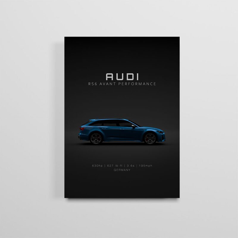 This US Specs – 1877 Audi RS6 Avant Performance digital poster is clean, technical automotive wall art with a detail-forward, premium look. It’s built for modern interiors where less is more – strong silhouette, controlled contrast, and a focused composition.